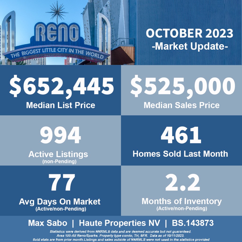 Reno NV – Real Estate Market Update – October 2023 – Max Sabo