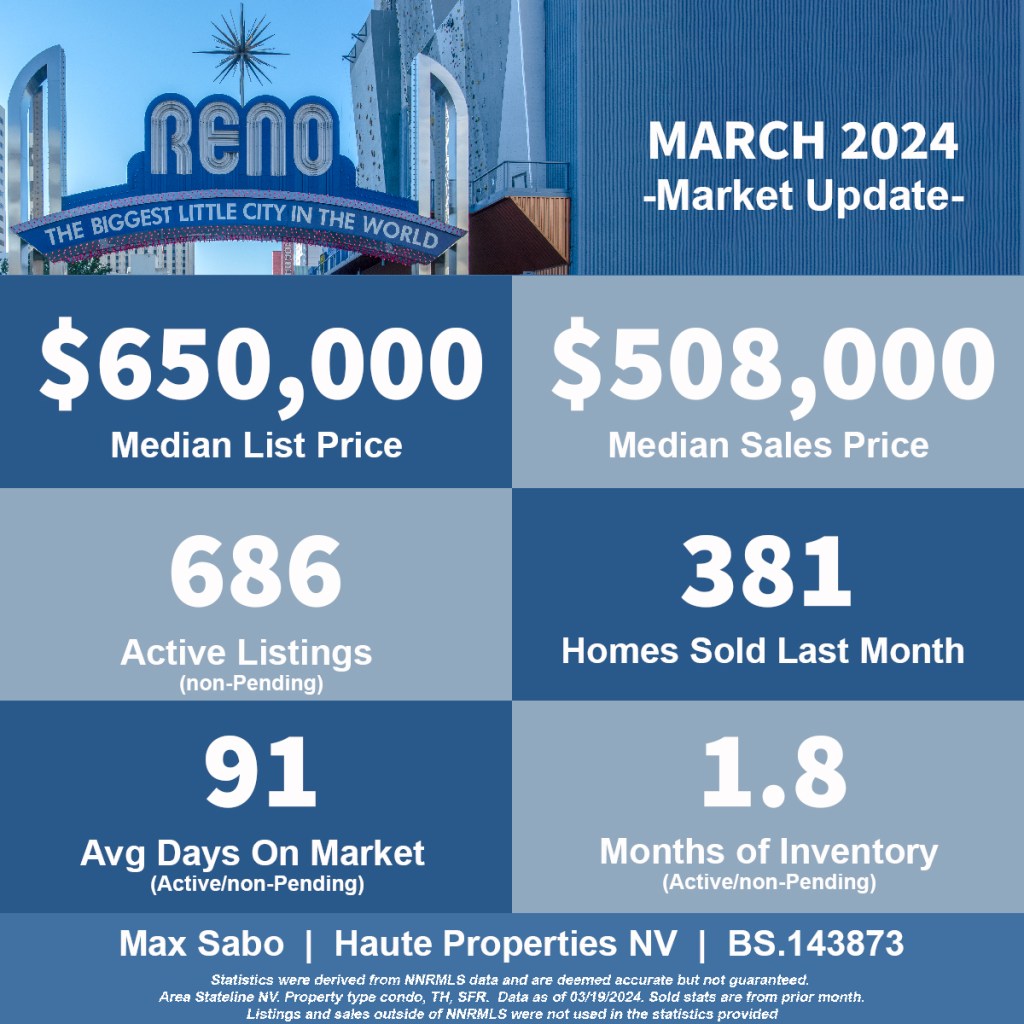 Hi, I’m Max Sabo, your Reno, Nevada real estate agent. This is the Real Estate Housing Market Update for March 2024, covering the sales from February 2024.